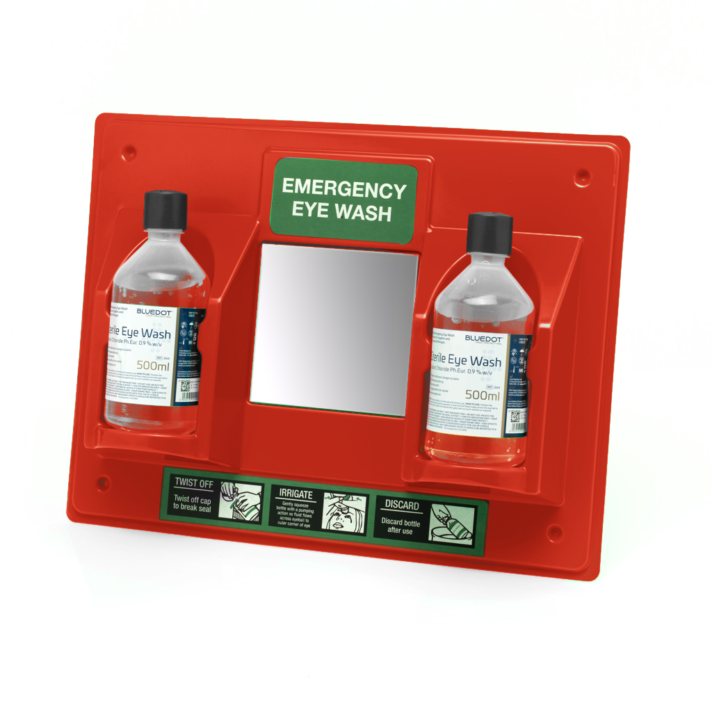 Blue Dot Eye Wash Station Empty Orange With Mirror